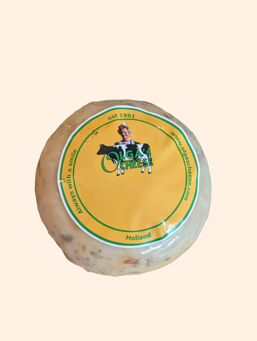 Handcrafted in Holland and paraffin‑coated for freshness, this baby wheel brings together the clean, mild tang of goat’s milk with classic Italian herbs. Perfect for antipasti boards, panini, pasta bakes, and sunny brunch plates.