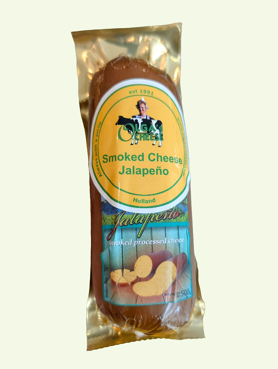 Traditionally smoked in Holland, this cheese log combines the mild creaminess of Dutch cheese with the vibrant heat of jalapeño. Vacuum-packed for freshness, it’s perfect for BBQ nights, burgers, and bold cheese boards.